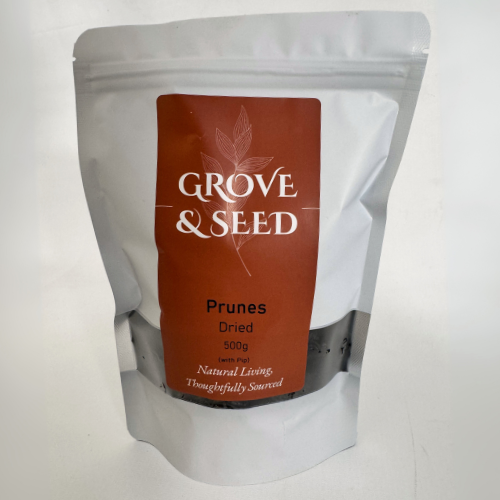 Grove & Seed dried prunes with the pip are moist, naturally sweet are high in fibre and potassium—excellent for snacking and promoting digestive wellness. Contains pits.